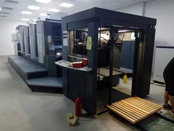本公司開發(fā)生產(chǎn)了一種印刷機(jī)預(yù)裝紙裝置,適用于國內(nèi)外各品牌印刷機(jī),用于印刷機(jī)進(jìn)紙的可垂直升降的進(jìn)紙托盤,其特征在于: 在印刷機(jī)進(jìn)紙托盤上安裝導(dǎo)軌,進(jìn)紙托盤上導(dǎo)軌與地面安裝的導(dǎo)軌對接,所述導(dǎo)軌和所述進(jìn)紙托盤之間還設(shè)置一個垂直于所述進(jìn)紙托盤的縱長的定位尺。新型的印刷機(jī)預(yù)裝紙裝置通過導(dǎo)軌可以精確定位小平板車,再通過定位尺對其上的紙張進(jìn)行定位,從而快速準(zhǔn)確地對小平板車上的紙張進(jìn)行定位作業(yè)。本實用新型的印刷機(jī)預(yù)裝紙置具有結(jié)構(gòu)簡單,高效,定位準(zhǔn)確等優(yōu)點。